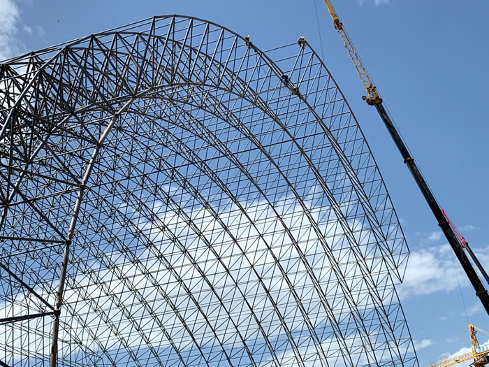 (2)网架加工前应对现场尺寸进行复测,确认无误后方可进行加工、安装;网架制作、运输、安装应遵守《空间网格结构技术规程》JGJ7-2010、《钢网架西藏螺栓球节点》JG/T 10-2009、《钢网架西藏螺栓球节点用高强度螺栓》 GB/T 16939-2016、《西藏钢结构西藏工程西藏施工规范》 GB50755-2012、《西藏钢结构西藏工程西藏施工质量验收标准》 GB50205-2020。
